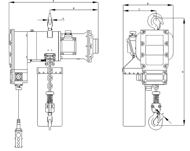 | 型號(hào) | 起重量t | 起升鏈條數(shù)量 | 起升高度m | 起升速度m/min | 運(yùn)行速度m/min | 起升電機(jī) | 運(yùn)行電機(jī) |